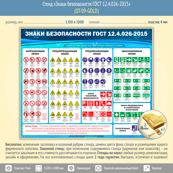 Стенд «Знаки безопасности ГОСТ 12.4.026-2015» (OT-09-GOLD) в Химках купить