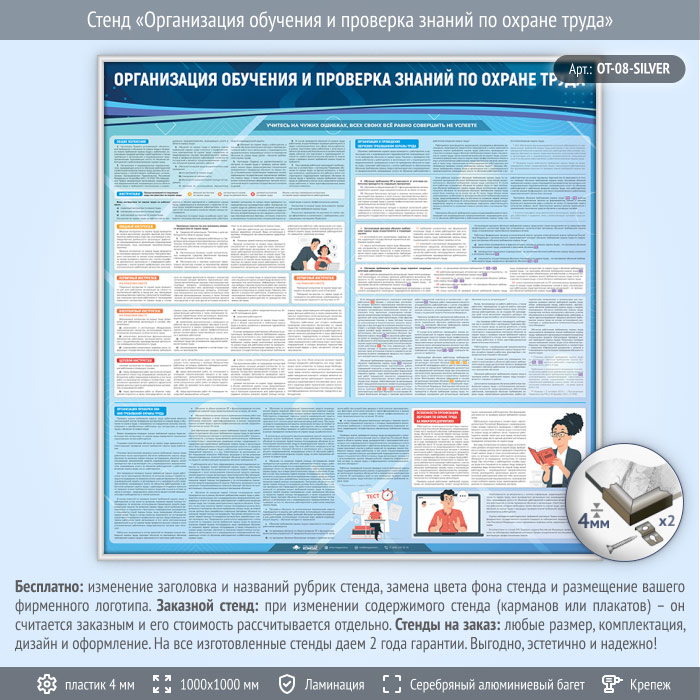 Стенд «Организация обучения и проверка знаний по охране труда» (OT-08-SILVER) в Химках купить
