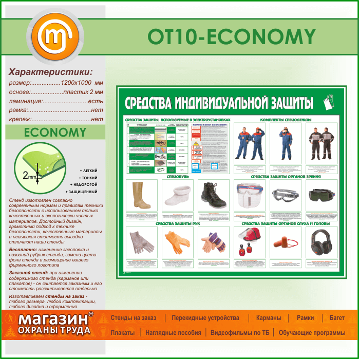 Стенд «Средства индивидуальной защиты» (OT-10-ECONOMY) в Химках купить