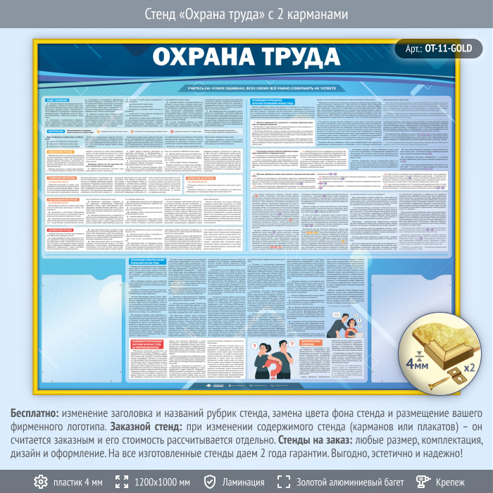 Стенд «Охрана труда» с 2 карманами (OT-11-GOLD) в Химках купить