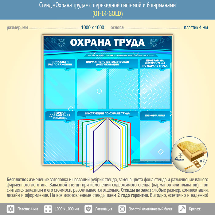 Стенд «Охрана труда» с перекидной системой и 6 карманами (OT-14-GOLD) в Химках купить