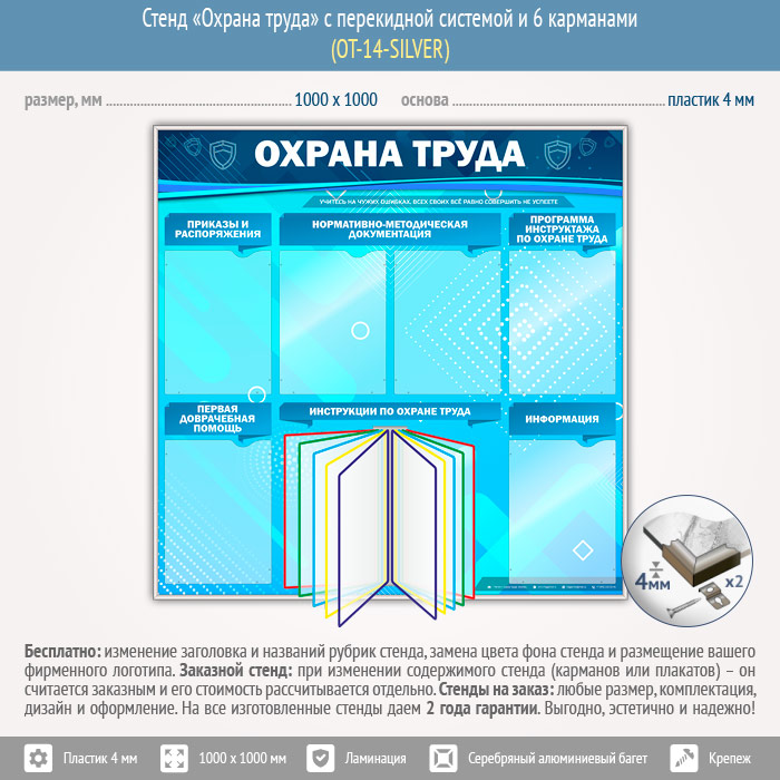 Стенд «Охрана труда» с перекидной системой и 6 карманами (OT-14-SILVER) в Химках купить