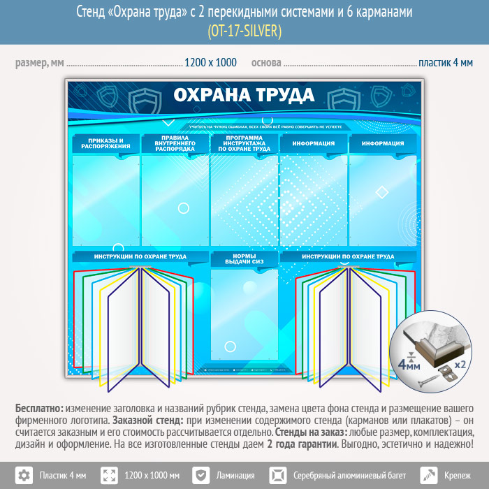 Стенд «Охрана труда» с 2 перекидными системами и 6 карманами (OT-17-SILVER) в Химках купить