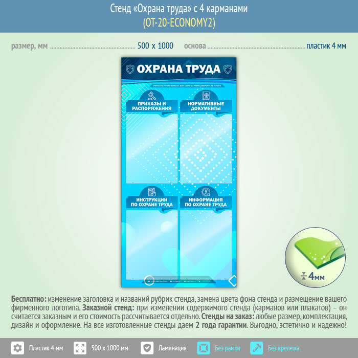 Стенд «Охрана труда» с 4 карманами (OT-20-ECONOMY2) в Химках купить