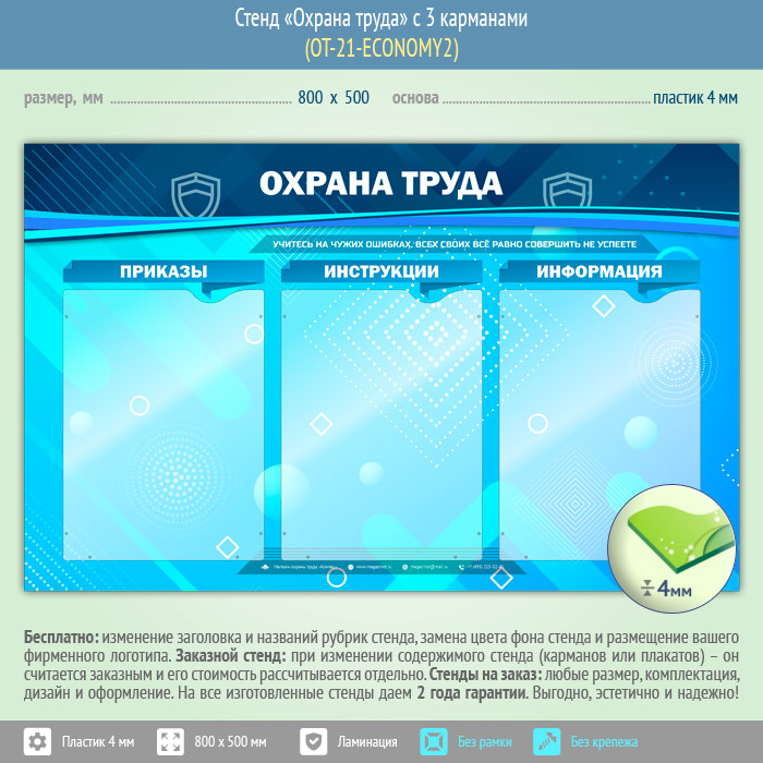 Стенд «Охрана труда» с 3 карманами (OT-21-ECONOMY2) в Химках купить
