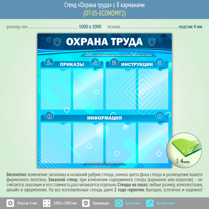 Стенд «Охрана труда» с 8 карманами (OT-05-ECONOMY2) в Химках купить