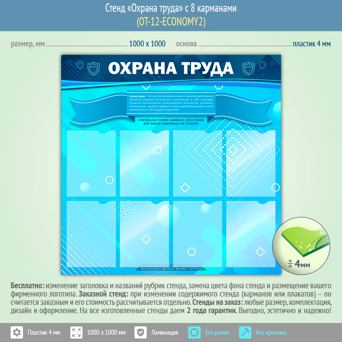 Стенд «Охрана труда» с 8 карманами (OT-12-ECONOMY2) в Химках купить