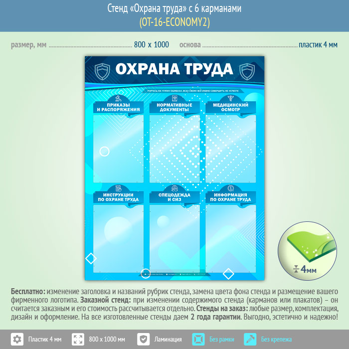 Стенд «Охрана труда» с 6 карманами (OT-16-ECONOMY2) в Химках купить