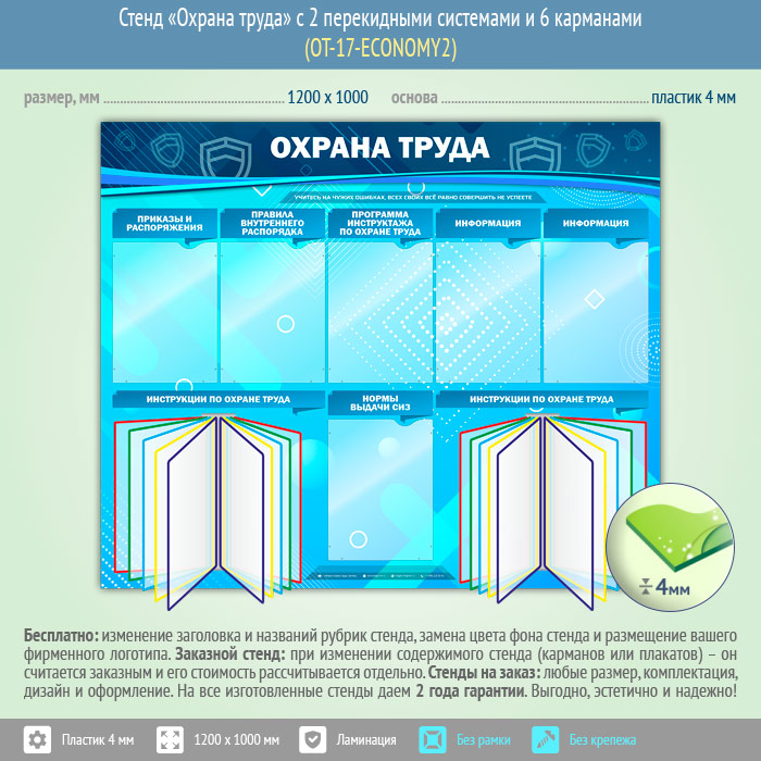 Стенд «Охрана труда» с 2 перекидными системами и 6 карманами (OT-17-ECONOMY2) в Химках купить