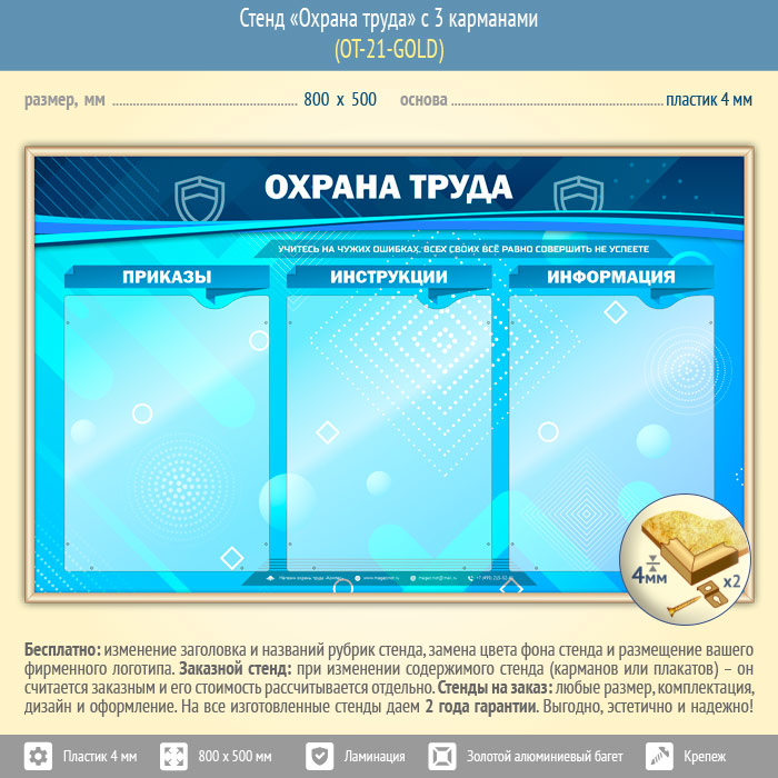 Стенд «Охрана труда» с 3 карманами (OT-21-GOLD) в Химках купить