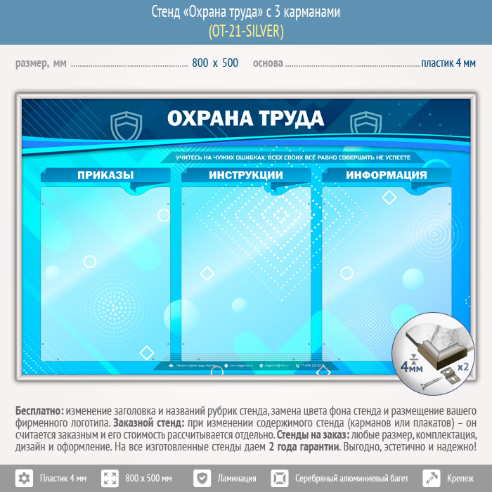 Стенд «Охрана труда» с 3 карманами (OT-21-SILVER) в Химках купить