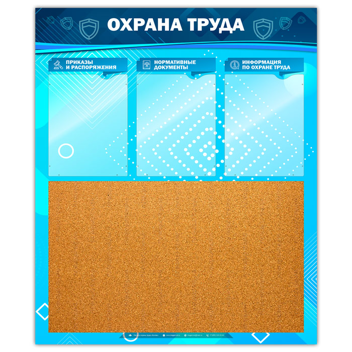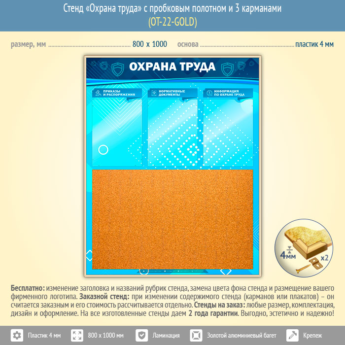 Стенд «Охрана труда» с пробковым полотном и 3 карманами (OT-22-GOLD) в Химках купить
