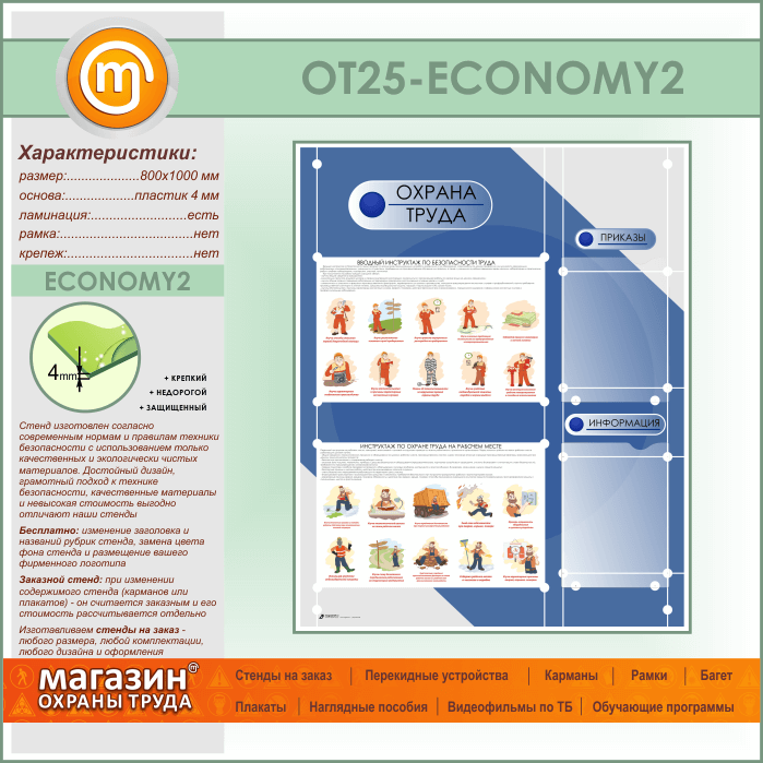 Стенд «Охрана труда» с 2 плоскими карманами (OT-25-ECONOMY2) в Химках купить