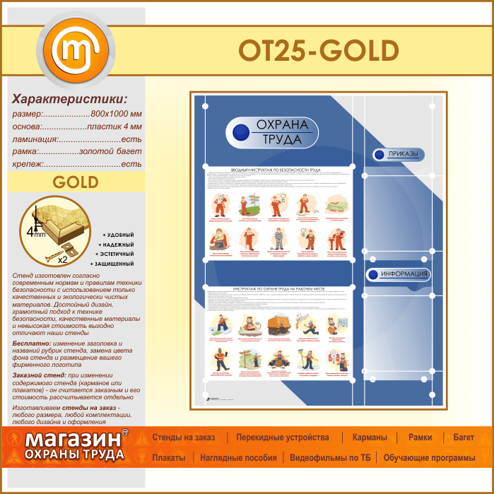 Стенд «Охрана труда» с 2 плоскими карманами (OT-25-GOLD) в Химках купить