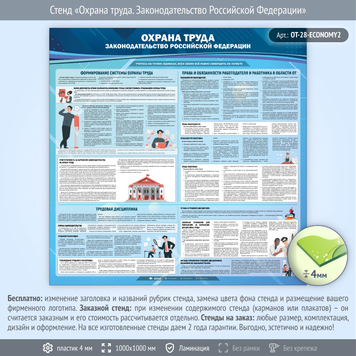 Стенд «Охрана труда. Законодательство Российской Федерации» (OT-28-ECONOMY2) в Химках купить