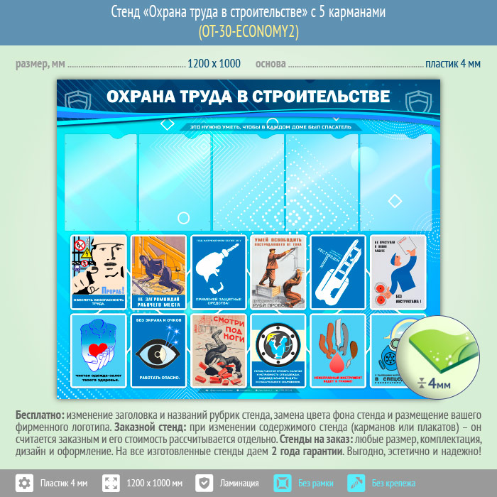 Стенд «Охрана труда в строительстве» с 5 карманами (OT-30-ECONOMY2) в Химках купить