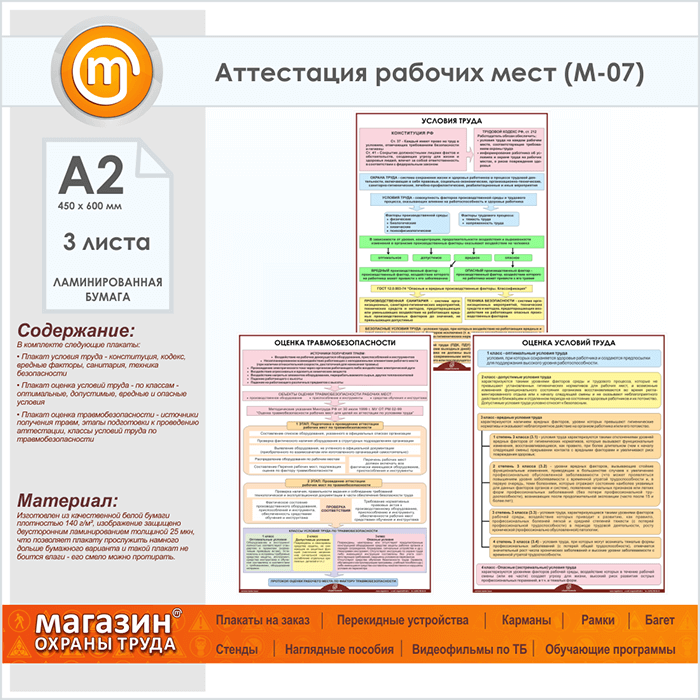 Плакаты «Аттестация рабочих мест» (М-07, ламинированная бумага, А2, 3 листа) в Химках купить