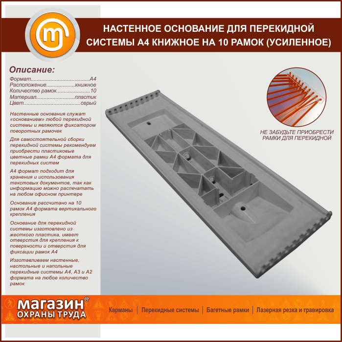 Настенное основание для перекидной системы А4 книжное на 10 рамок (усиленное) в Химках купить