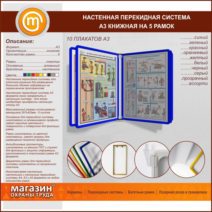 Настенная перекидная система А3 на 5 рамок книжная в Химках купить