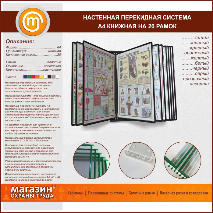 Настенная перекидная система А4 на 20 рамок книжная в Химках купить