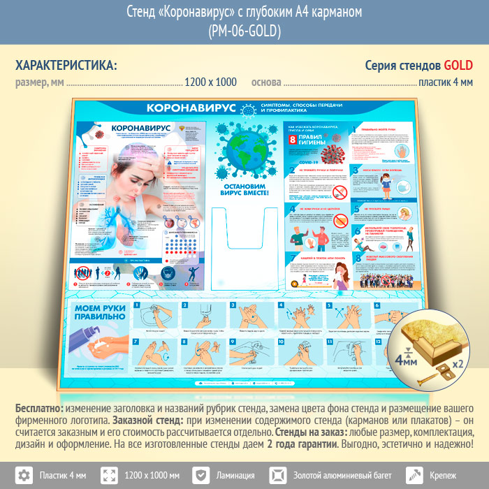 Стенд «Коронавирус» с глубоким А4 карманом (PM-06-GOLD) в Химках купить