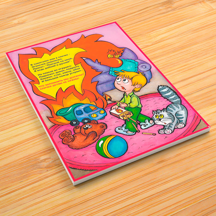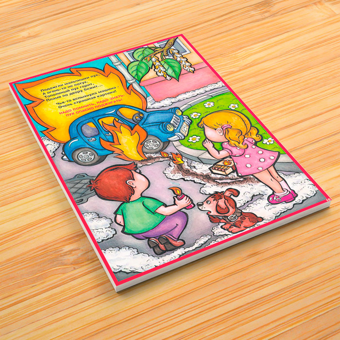 Комплект плакатов «Детям о правилах пожарной безопасности» из 10 листов поведает в стихах и красочных иллюстрациях о десяти основных правилах, которые дети должны знать о пожарной безопасности