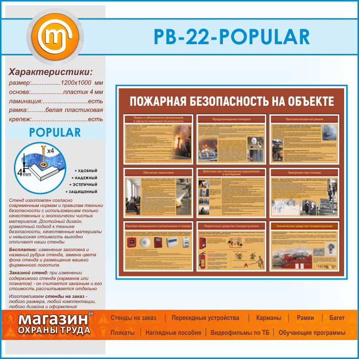 Стенд «Пожарная безопасность на объекте» (PB-22-POPULAR) в Химках купить