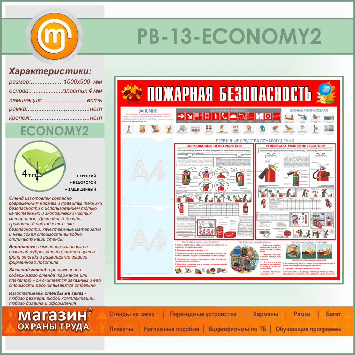 Стенд «Пожарная безопасность» с 2 карманами (PB-13-ECONOMY2) в Химках купить