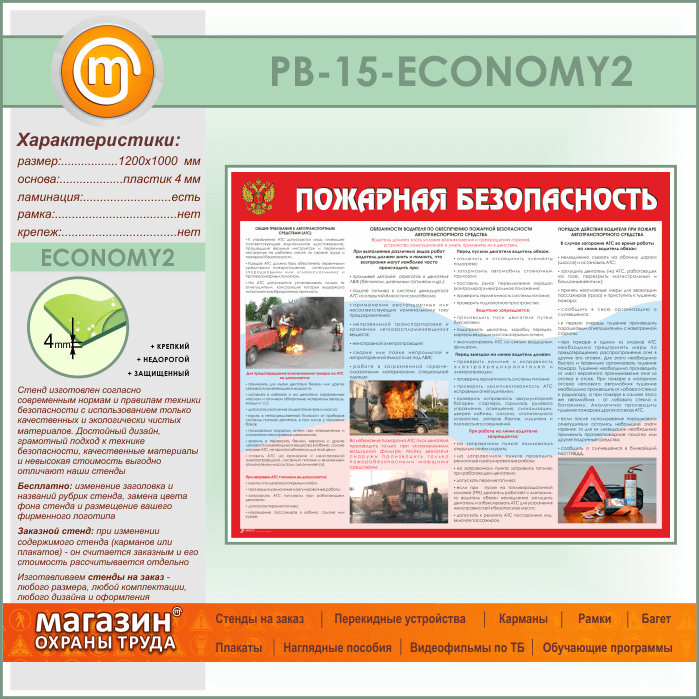 Стенд «Пожарная безопасность на автотранспорте» (PB-15-ECONOMY2) в Химках купить