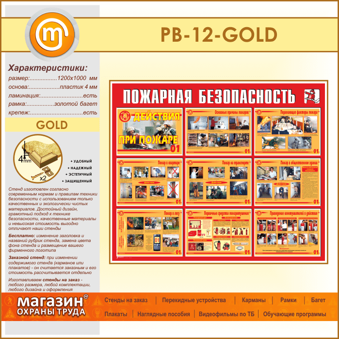 Стенд «Пожарная безопасность. Действия при пожаре» (PB-12-GOLD) в Химках купить