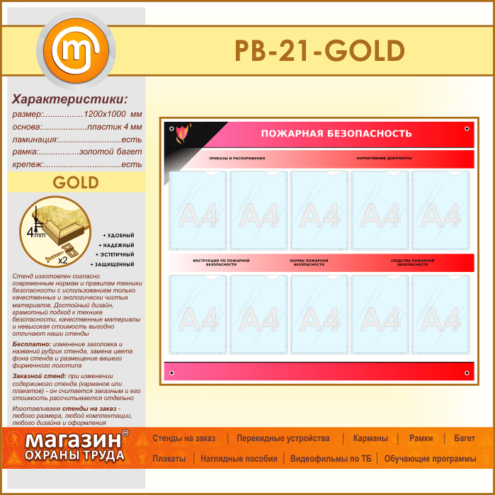 Стенд «Пожарная безопасность» с 10 карманами (PB-21-GOLD) в Химках купить