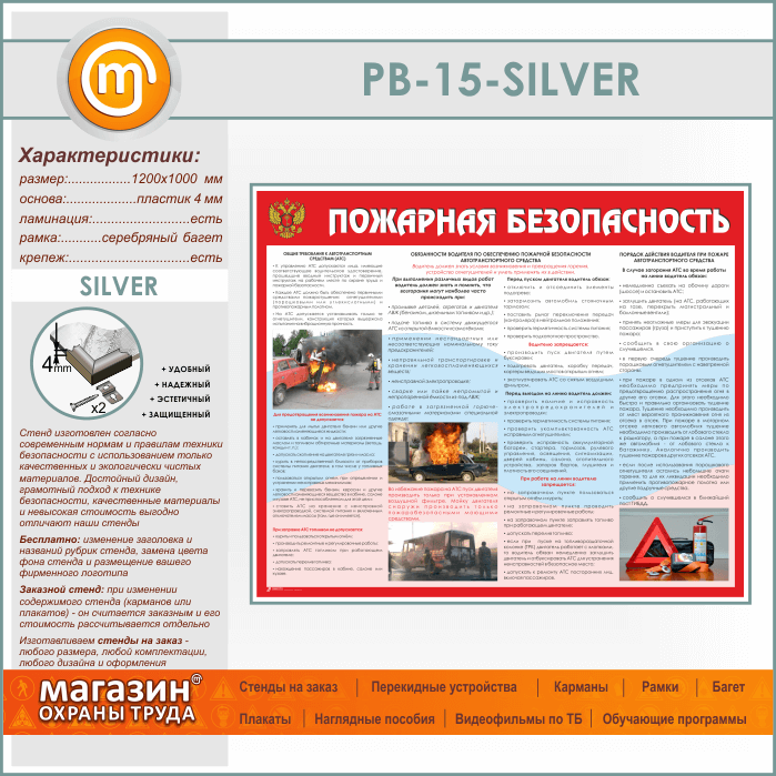 Стенд «Пожарная безопасность на автотранспорте» (PB-15-SILVER) в Химках купить