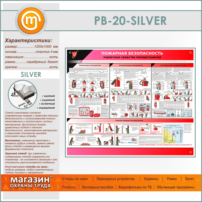 Стенд «Пожарная безопасность. Первичные средства пожаротушения» (PB-20-SILVER) в Химках купить