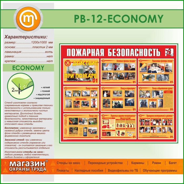 Стенд «Пожарная безопасность. Действия при пожаре» (PB-12-ECONOMY) в Химках купить