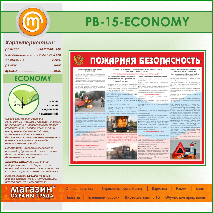 Стенд «Пожарная безопасность на автотранспорте» (PB-15-ECONOMY) в Химках купить