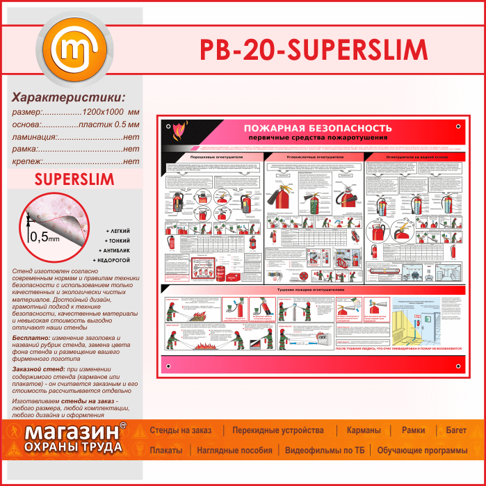 Стенд «Пожарная безопасность. Первичные средства пожаротушения» (PB-20-SUPERSLIM) в Химках купить