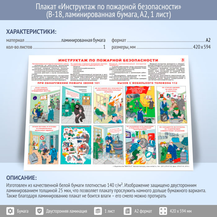 Плакат «Инструктаж по пожарной безопасности» (В-18, ламинированная бумага, А2, 1 лист) в Химках купить