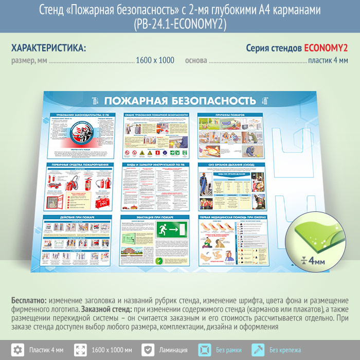 Стенд «Пожарная безопасность» с 2-мя глубокими А4 карманами (PB-24.1-ECONOMY2) в Химках купить