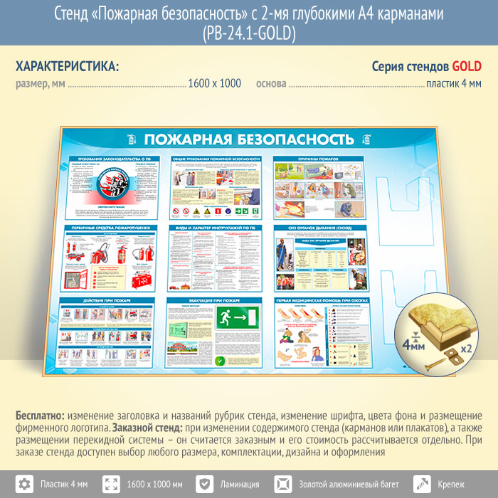 Стенд «Пожарная безопасность» с 2-мя глубокими А4 карманами (PB-24.1-GOLD) в Химках купить
