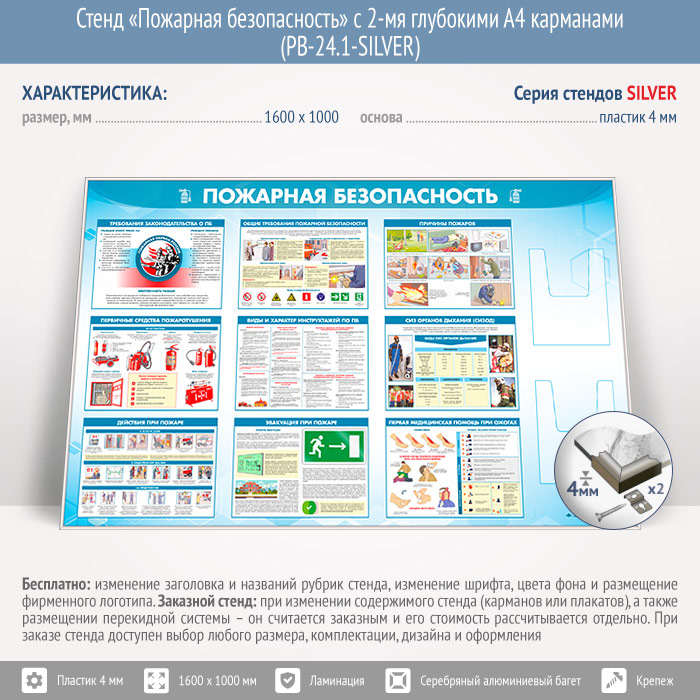 Стенд «Пожарная безопасность» с 2-мя глубокими А4 карманами (PB-24.1-SILVER) в Химках купить