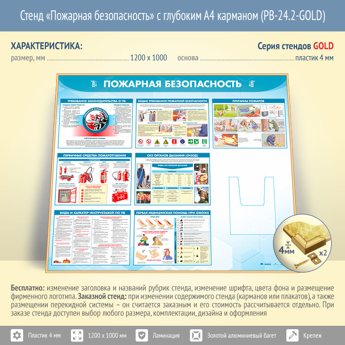 Стенд «Пожарная безопасность» с глубоким А4 карманом (PB-24.2-GOLD) в Химках купить