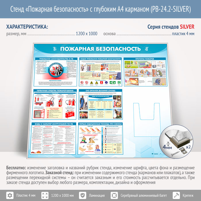 Стенд «Пожарная безопасность» с глубоким А4 карманом (PB-24.2-SILVER) в Химках купить