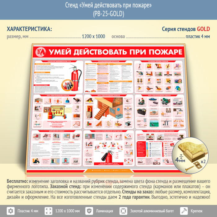 Стенд «Умей действовать при пожаре» (PB-25-GOLD) в Химках купить