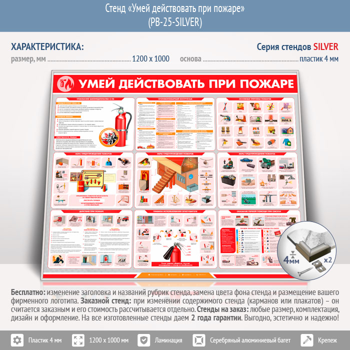 Стенд «Умей действовать при пожаре» (PB-25-SILVER) в Химках купить