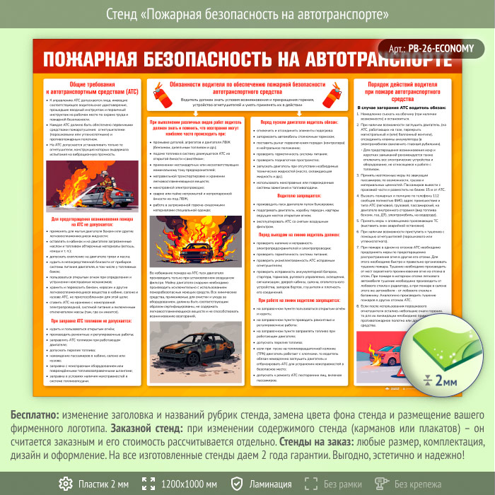 Стенд «Пожарная безопасность на автотранспорте» (PB-26-ECONOMY) в Химках купить