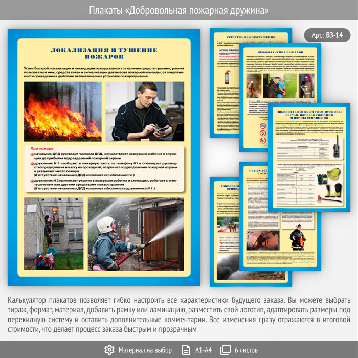 Плакаты «Добровольная пожарная дружина» (ВЗ-14, 6 листов) в Химках купить