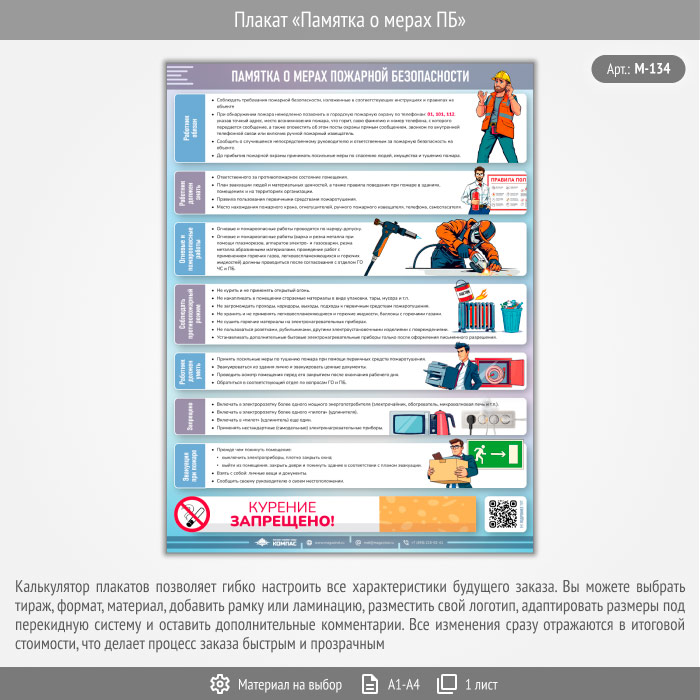 Плакат «Памятка о мерах ПБ» с QR (М-134, 1 лист) в Химках купить