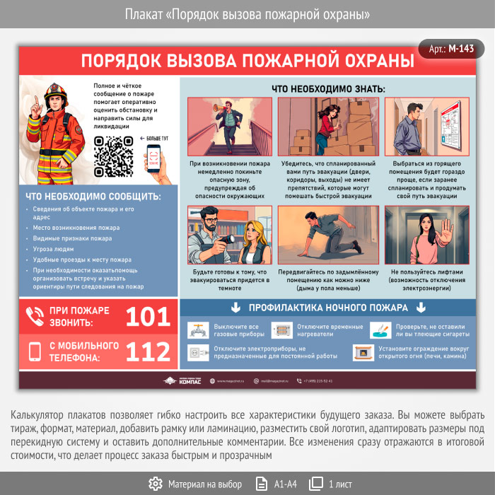 Плакат «Порядок вызова пожарной охраны» с QR (М-143, 1 лист) в Химках купить