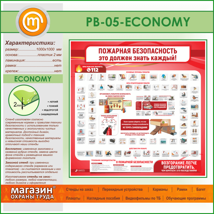 Стенд «Пожарная безопасность. Это должен знать каждый» (PB-05-ECONOMY) в Химках купить