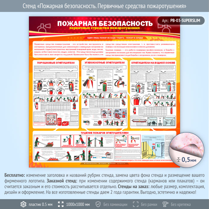 Стенд «Пожарная безопасность. Первичные средства пожаротушения» (PB-03-SUPERSLIM) в Химках купить